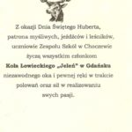 Pani Nadleśniczy Nadleśnictwa Choczewo, za pośrednictwam Kol. Frątczaka, przekazała na ręce Kol. Tadeusza Piankowskiego oficjalne podziękowanie dla zarządu koła.